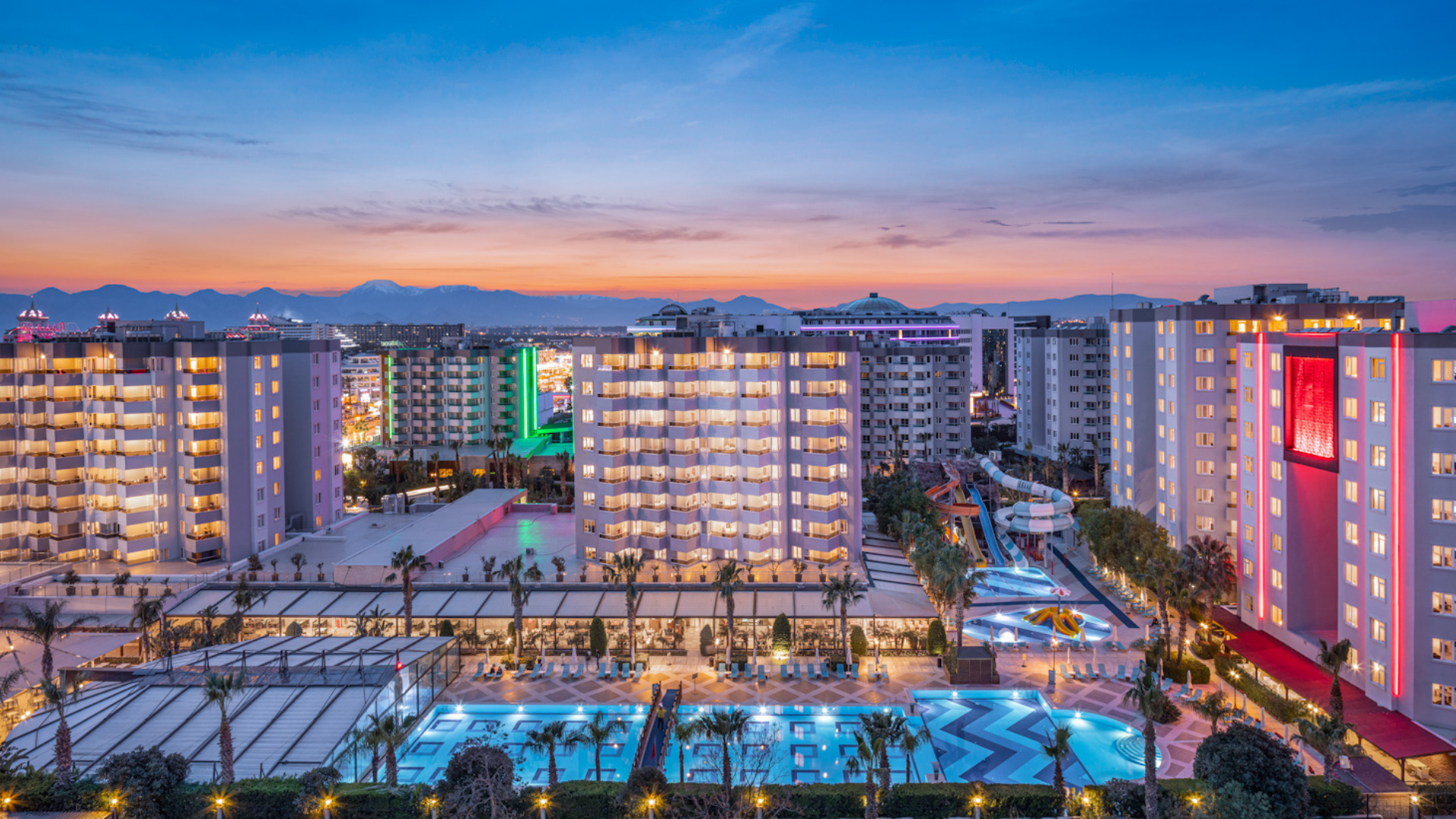 Инфраструктура: Большой, современный комплекс с развитой инфраструктурой, включающий несколько корпусов и обширную территорию (18 000 кв.м). Здесь вы найдете несколько бассейнов, 4 водные горки, аквапарк, спа-центр, фитнес-зал, хамам, сауну, различные рестораны и бары. Отель предлагает широкий спектр развлечений для всех возрастов. Территория большая, но хорошо спланирована, поэтому перемещаться удобно. Недалеко автобусная остановка.