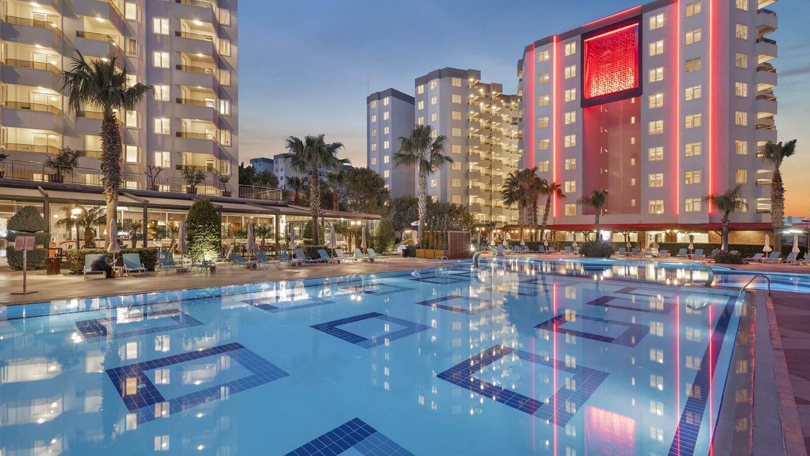 Инфраструктура: 15-этажное здание Elegance, два 7-этажных корпуса Park и Club и 4 бунгало. Реновация отеля была в 2019 г. Готовьтесь к погружению в атмосферу Османской империи! Интерьеры отеля впечатляют своим великолепием и восточным шиком. Здесь вы найдете все, что нужно для роскошного отдыха: несколько бассейнов с морской водой (открытых и закрытых), водные горки для любителей адреналина, спа-центр, сауна, хаммам, фитнес-центр. Территория отеля большая (40 000 кв.м), ухоженная, утопает в зелени. Везде диванчики, столики, уютные закоулки для отдыха.